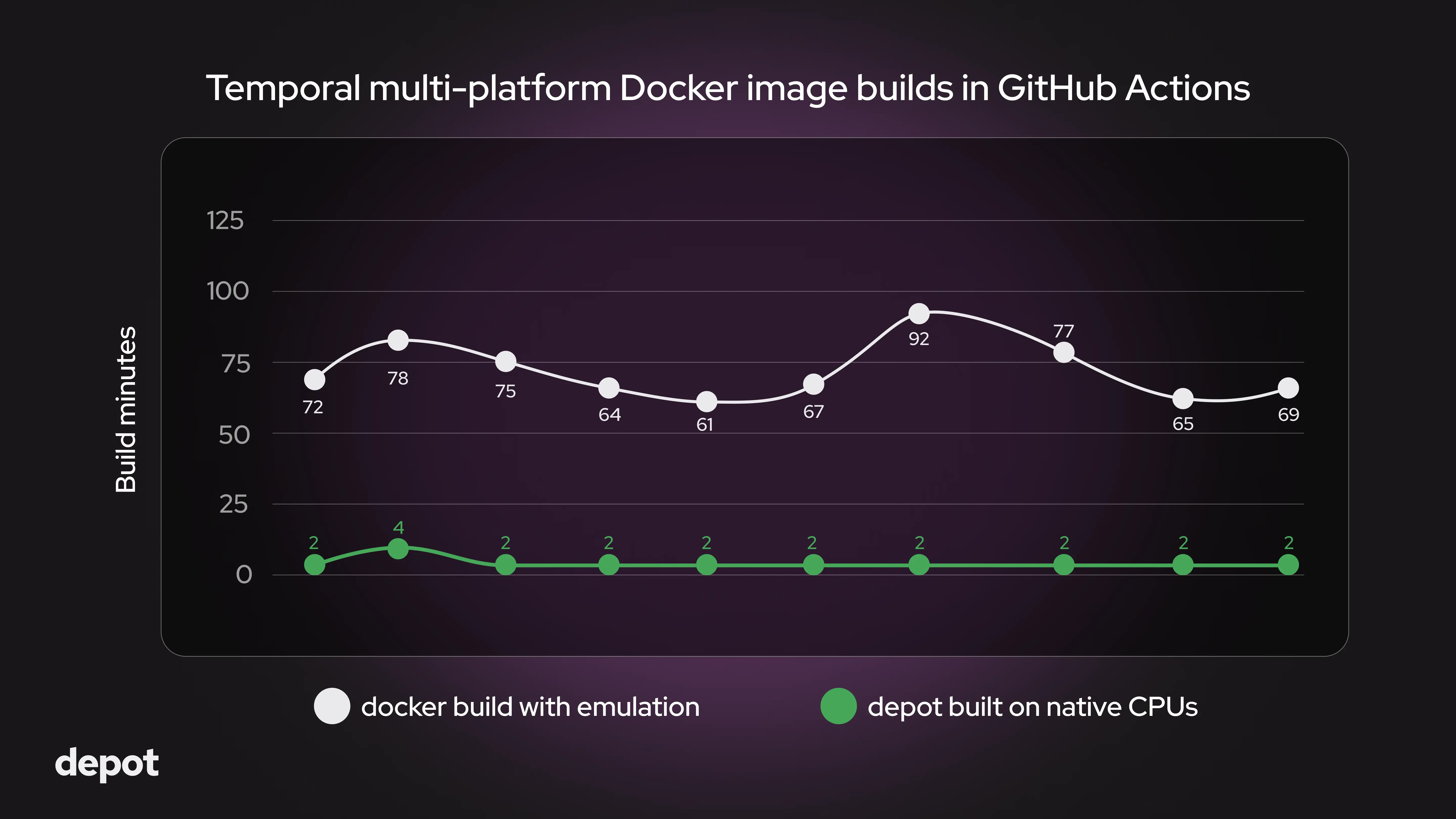 We built Depot to eliminate the pain of emulation and other limitations above, not only in GitHub Actions but in all CI providers.