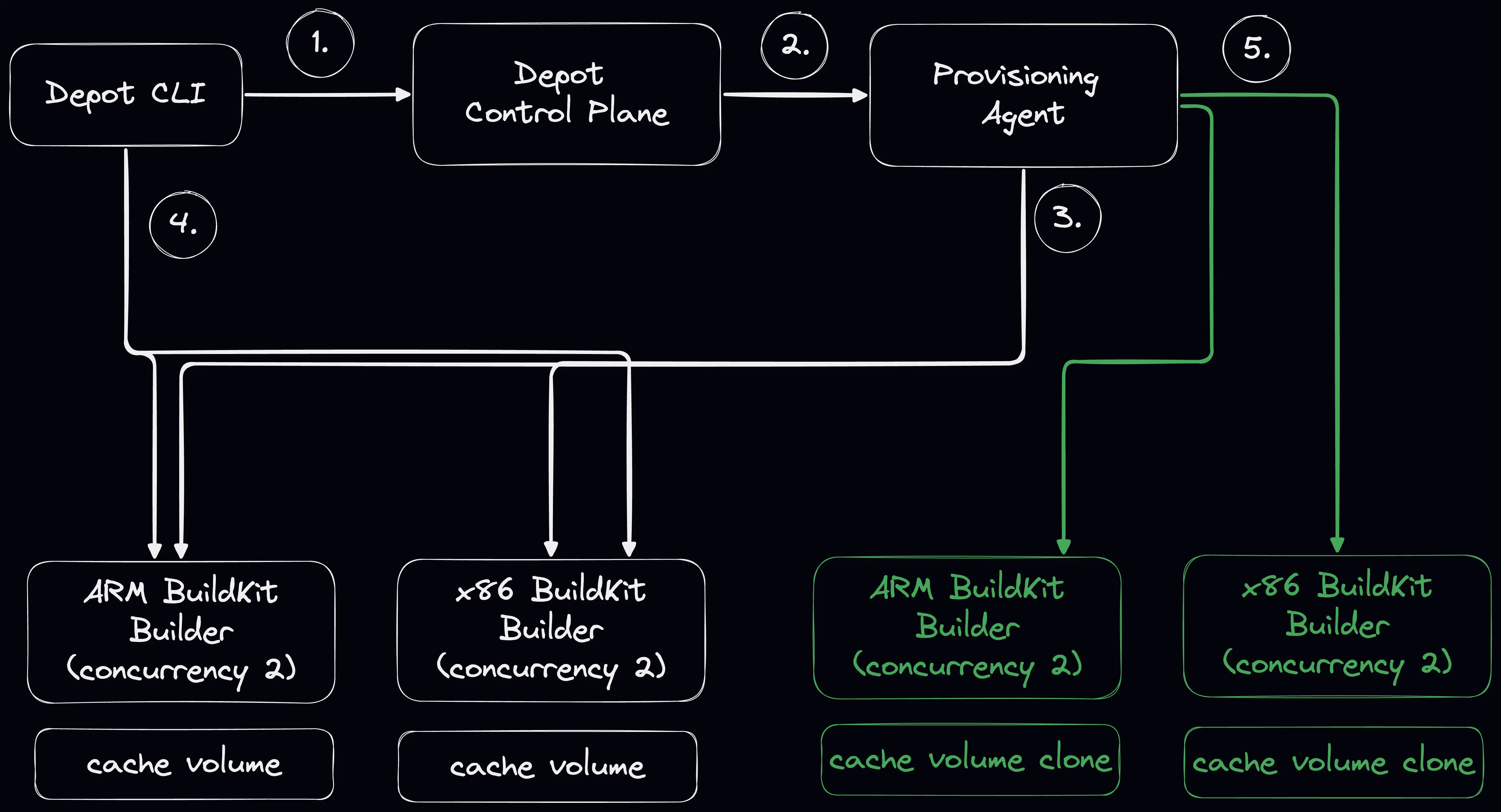You run depot build, which informs our control plane that you'd like to run a container build