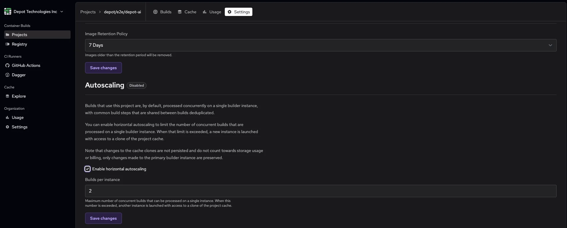 Enabled horizontal autoscaling on a Depot project