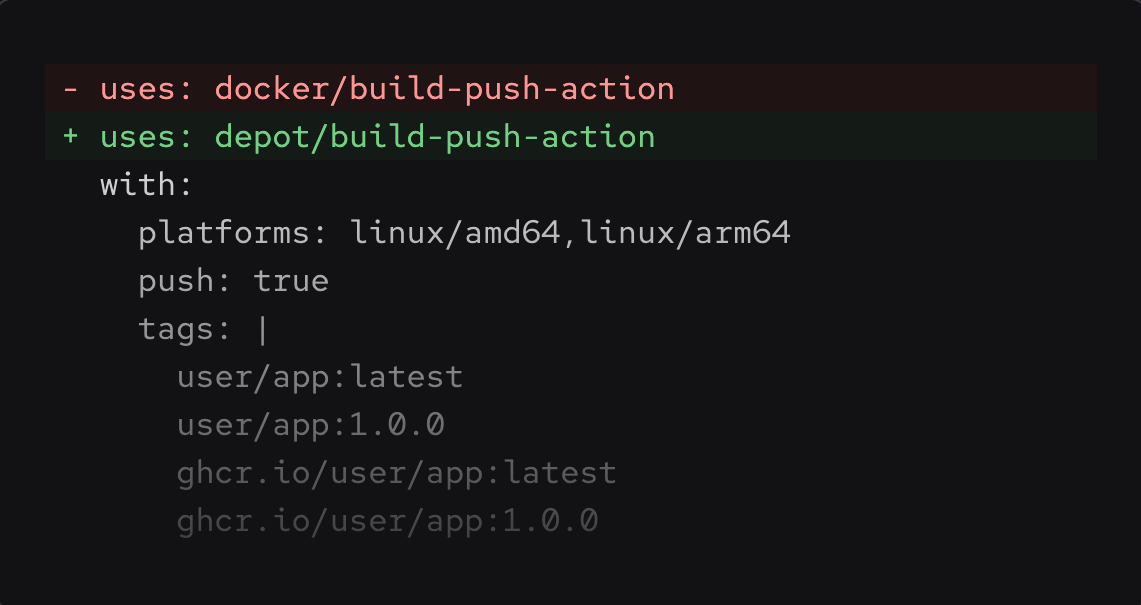 Already using Docker GitHub Actions? Depot Actions are a drop-in replacement: